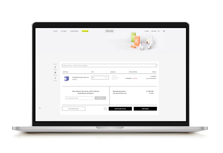 Wird ein Artikel, der sich gerade in Aktion befindet, in den Warenkorb gelegt, ist hier neben dem durchgestrichenen, regulären Preis nun auch der Aktionspreis in Rot zu sehen.