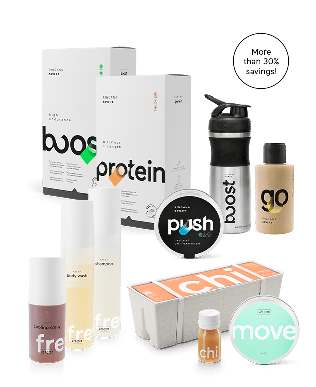 Set bestehend aus: FRESH tooth oil, FRESH scrub, FRESH deodorant, FRESH foot balm, FRESH hand balm, FRESH body milk, COMPLETE d-eat one day, RINGANAchi x 3, FRESH date bag, 10x FRESH date booklet, 10x RINGANA magazine, 10x RINGANA ballpoint pen, 10x FRESH date invitation cards, als Draufgabe gibt es exklusiv 10x RINGANA coaster (nur solange der Vorrat reicht)[/caption]