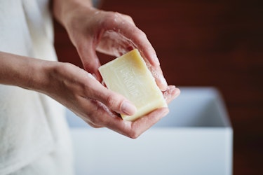FRESH soapMoulé, découpé et estampillé à la main, puis emballé avec soin dans une serviette – Le FRESH soap est de l'artisanat pur ! À l'utilisation, il laisse place à une mousse délicatement parfumée et particulièrement nettoyante. Grâce à sa formulation douce, ce savon est parfaitement adapté à un usage fréquent.