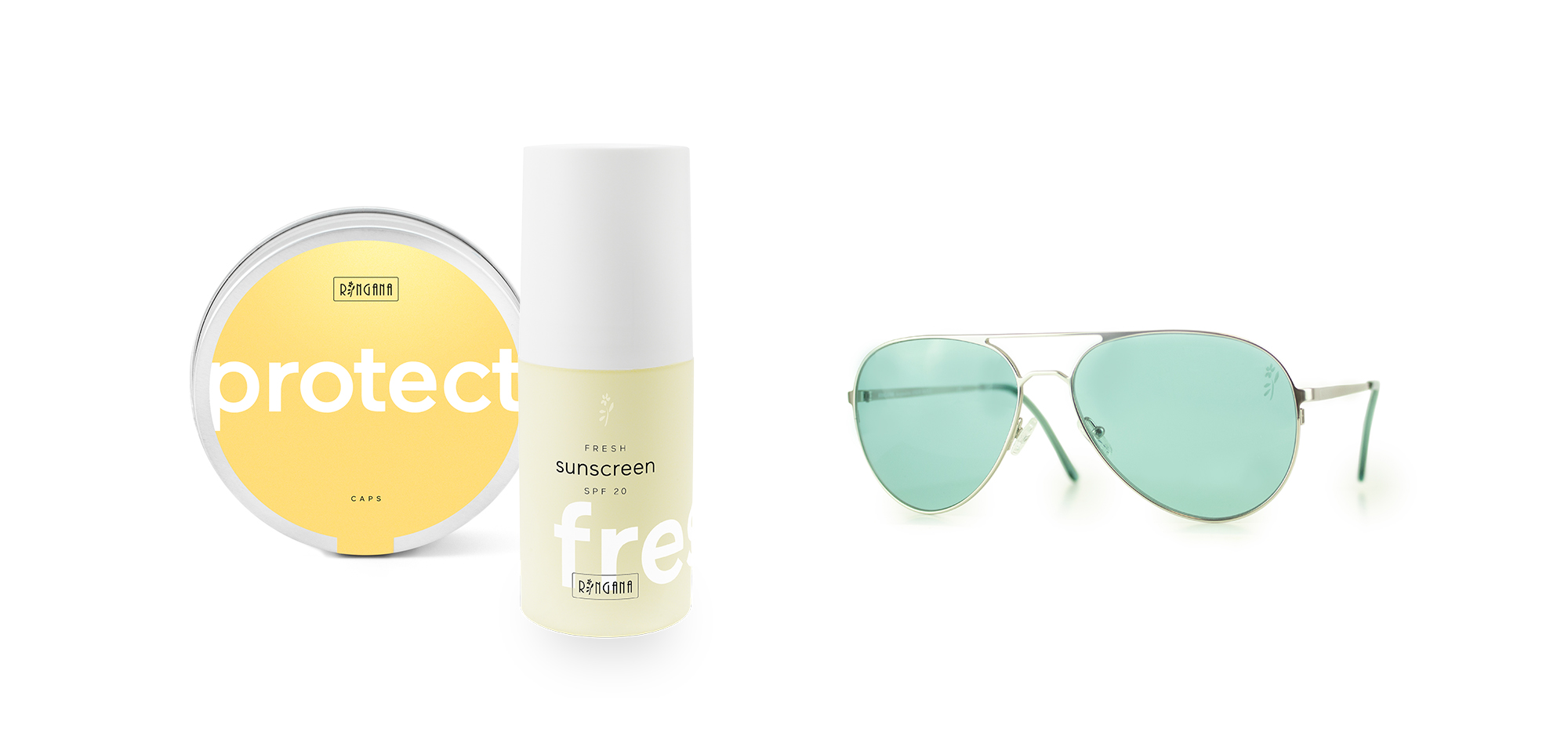 Die Sonnenbrille verbindet gekonnt die Handschrift der beiden Firmen: Zeitlos, elegantes Design trifft auf das frische RINGANA Grün. Die klassische Pilotenbrille wurde extra für RINGANA entwickelt und trägt das RINGANA Symbol elegant in der Linse als Gravur. Erhältlich ist die Sonnenbrille exklusiv für RINGANA Frischepartner in limitierter Stückzahl gemeinsam mit dem natürlichen RINGANA Sonnenschutz (FRESH sunscreen SPF 20) und den RINGANA CAPS protect, die sonnenbedingter Hautalterung vorbeugen. Ein Set für den optimalen Sonnen-Rundum-Schutz.